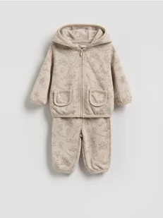 Komplet składający się z bluzy i spodni, wykonany z bawełnianej dzianiny.