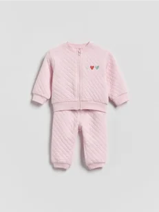Komplet składający się z bluzy i spodni, wykonany z dzianiny z bawełną.