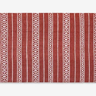Dywanik czerwono-śliwkowy 160x230 cm wykonany z wytrzymałego PVC. Doskonały do wnętrz i na zewnątrz, z nowoczesnym wzorem białych linii. Łatwy w utrzymaniu i odporny na codzienne użytkowanie. Idealny do salonów, wejść lub tarasów. Dostępny w 4 rozmiarach.