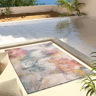 Ciesz się swoim ogrodem lub tarasem i dodaj stylu dzięki abstrakcyjnemu dywanowi zewnętrznemu SAMARA. Odporny na słońce i wodę dywan, który zachwyci Cię swoimi pastelowymi odcieniami.