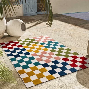 Prostokątny wielokolorowy dywan zewnętrzny 80 x 150 cm MILA z geometrycznym wytłoczeniem - ATTICGO
