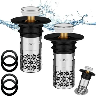 【Wbudowany filtr】W porównaniu ze zwykłym korkiem do zlewu, ta najnowsza zatyczka typu pop-up z wyjmowanym filtrem zapobiega przedostawaniu się do odpływu włosów, pierścionków, kolczyków i brudu. Jest o wiele bardziej użyteczny i skuteczny niż tradycyjne korki do zlewów.