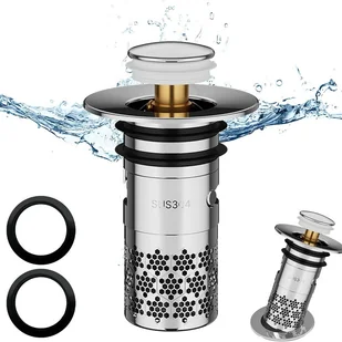 【Wbudowany filtr】W porównaniu ze zwykłym korkiem do zlewu, ta najnowsza zatyczka typu pop-up z wyjmowanym filtrem zapobiega przedostawaniu się do odpływu włosów, pierścionków, kolczyków i brudu. Jest o wiele bardziej użyteczny i skuteczny niż tradycyjne korki do zlewów.