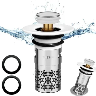 【Wbudowany filtr】W porównaniu ze zwykłym korkiem do zlewu, ta najnowsza zatyczka typu pop-up z wyjmowanym filtrem zapobiega przedostawaniu się do odpływu włosów, pierścionków, kolczyków i brudu. Jest o wiele bardziej użyteczny i skuteczny niż tradycyjne korki do zlewów.