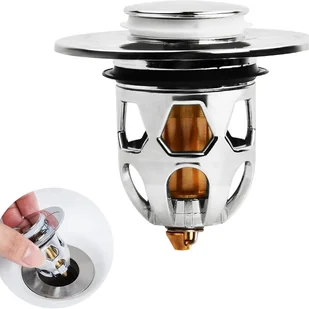 【Wbudowany filtr】 Wysuwany korek do zlewu jest łatwy w demontażu i czyszczeniu. Wewnątrz znajduje się filtr koszykowy zapobiegający zatykaniu. Dzięki wyjmowanej konstrukcji, duży filtr zbiera włosy i zapobiega zatykaniu się rury spustowej.