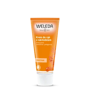 Weleda Krem do Rąk z Rokitnikiem 50mlWeleda Krem do Rąk z Rokitnikiem to lekki, szybko wchłaniający się krem przeznaczony do codziennej pielęgnacji dłoni. Chroni skórę przed przesuszeniem, zapewniając jej miękkość, elastyczność i zdrowy wygląd. Formuła oparta na organicznych olejach z rokitnika i sezamu intensywnie odżywia i regeneruje nawet bardzo suchą, szorstką skórę dłoni. Rokitnik - bogaty w witaminy i nienasycone kwasy tłuszczowe - wspiera naturalne procesy odnowy skóry, podczas gdy olejek sezamowy zapewnia optymalne nawilżenie i gładkość. Krem otula dłonie delikatnym, energetyzującym zapachem olejków eterycznych z grejpfruta, słodkiej mandarynki i drzewa sandałowego.