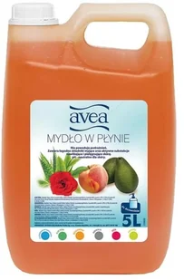 Avea mydło w płynie 5l brzoskwinia Avea mydło w płynie to idealna propozycja dla domowników i przedsiębiorców, którzy lubią ergonomiczne rozwiązania. Pięciolitrowe opakowanie wystarczy na bardzo długo. Mydło w płynie Avea zapewnia skuteczne mycie i dezynfekcję skóry, pozostawią ją miękką i delikatną. Dodatek aromatycznej brzoskwini spowoduje długotrwały zapach świeżości długo po użyciu.