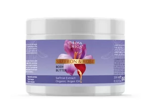 Masło do ciała Szafran i Róża odżywia, intensywnie nawilża i chroni skórę przed przedwczesnym starzeniem. Jest wzbogacone w cenne naturalne składniki, szafran i organiczny olejek różany dzięki, którym ma działanie antyoksydacyjne i odżywcze, odbudowuje barierę ochronną skóry i stymuluje regenerację. Kwas hialuronowy pobudza produkcję kolagenu, zmiękcza naskórek i zapobiega starzeniu się skóry. Olejek arganowy i z orzechów laskowych chronią przed działaniem niekorzystnym środowiska oraz nadają elastyczność i gęstość skórze. Użycie: Nakładać niewielką ilość masła na oczyszczoną skórę ciała ruchami masującymi.