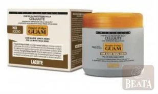 Fanghi d'alga GUAM wyprodukowany przez LACOTE to błotny koncentrat zawierający kombinację ekstraktów roślinnych z bluszczu, kasztanowca, olejków esencjonalnych z cytryny i oregano oraz w 100% naturalne składniki pochodzenia morskiego, takie jak algi, glinka i sole mineralne. Preparat bardzo skutecznie walczy z cellulitem oraz nadmiarem tkanki tłuszczowej. Dzięki opatentowanej formule antycellulitowej efekty widoczne są już po pierwszym zastosowaniu, a efektywność stosowania terapii została potwierdzona instrumentalnymi badaniami klinicznymi.