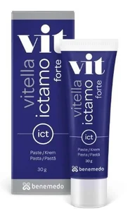 Vitella Ictamo Forte krem na trudne zmiany skórne 30 g - krem na trudne zmiany skórne to specjalistyczny produkt o wzmocnionej skuteczności przeciwzapalnej, przeciwgrzybicznej, przeciwbakteryjnej i przeciwświądowej. Może być stosowany przy: trądziku, łojotoku, bliznach, objawach atopii - swędzenie, zaczerwienienie.