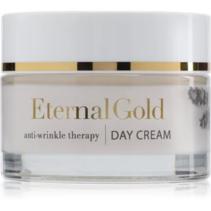 Krem na dzień ETERNAL GOLD 50 ml Bogata w naturalne składniki i ekstrakty roślinne formuła zapewnia wszechstronną pielęgnację, regenerację i ochronę w ciągu dnia. Uprawiana w monitorowanych warunkach szałwia muszkatołowa (Xeradin) zawarta w produkcie, gwarantuje skórze komfort i 24-godzinne nawodnienie. Krem zapewnia błyskawiczny efekt botox-like, dzięki olejowi z hiszpańskiej lawendy (Stoechiol), który blokuje skurcze mięśni mimicznych, przyczyniając się do widocznego spłycenia bruzd i zmarszczek. Najlepsze efekty zapewnia stosowanie całej terapii Eternal Gold.Ekskluzywny krem do stosowania na dzień dla skóry dojrzałej, przesuszonej i wrażliwej. Sposób użycia: Za pomocą dołączonej szpatułki nanieść krem na oczyszczoną skórę twarzy, szyi i dekoltu, wmasować i pozostawić do wchłonięcia. Ze względu na delikatny sposób konserwacji produktu, zaleca się nabieranie kosmetyku szpatułką. Skład: AQUA, CAPRYLIC/CAPRIC TRIGLYCERIDE, CETEARYL ALCOHOL, TITANIUM DIOXIDE, ALUMINA, GLYCERIN, ETHYLHEXYL COCOATE, GLYCINE SOJA (SOYBEAN) OIL, STEARIC ACID, CETEARETH-20, BUTYROSPERMUM PARKII (SHEA) BUTTER, PROPANEDIOL, SALVIA SCLAREA CLARY EXTRACT, PROPYLENE GLYCOL, RUBUS IDAEUS (RASPBERRY) FRUIT EXTRACT, FRAGARIA VESCA (STRAWBERRY) FRUIT EXTRACT, ACTINIDIA CHINENSIS (KIWI) FRUIT EXTRACT, PYRUS MALUS (APPLE) FRUIT EXTRACT, PRUNUS PERSICA (PEACH) FRUIT EXTRACT, CARICA PAPAYA (PAPAYA) FRUIT EXTRACT, CUCUMIS SATIVUS (CUCUMBER) FRUIT EXTRACT, PANTHENOL, SODIUM HYALURONATE, LAVANDULA STOECHAS EXTRACT, XANTAN GUM, GOLD (NANO), SYNTHETIC FLUORPHLOGOPITE, IRON OXIDE, PHENOXYETHANOL, CAPRYLYL GLYCOL, CHLORPHENESIN, PARFUM, BENZYL SALICYLATE, LINALOOL, LIMONENE, COUMARIN, ALPHA-ISOMETHYL IONONE.