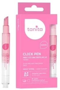 Tanita Click Pen z ekstraktem z kwiatu wiśni to niezwykle prosty i precyzyjny w użyciu aplikator z woskiem o praktycznym kształcie, który został opracowany z myślą o depilacji delikatnych partii twarzy. Skutecznie i szybko poradzi sobie z uporczywymi włoskami na brwiach, policzkach, brodzie oraz nad górną wargą. Znakomicie usuwa najdrobniejsze włoski wraz z cebulkami, pozostawiając skórę twarzy gładką nawet do 4 tygodni. Specjalna formuła z ekstraktem z kwiatu wiśni oddziałuje na skórę kojąco, niweluje podrażnienia, a także zapobiega ich powstawaniu. Dzięki właściwościom nawilżającym, przyśpiesza proces odnowy naskórka, a skóra po zabiegu depilacyjnym pozostaje delikatna w dotyku.