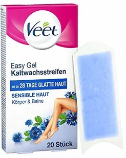 Veet Paski woskowe Easy-Gelwax Technology nogi i ciało do skóry wrażliwej, 20 sztuk