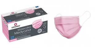 OPHARM Maska chirurgiczna z gumką 50 szt. Odporna na zachlapania. Trzywarstwowa. Produkt medyczny zgodny z normą EN: 14683: 2019, zgłoszony do Urzędu Rejestracji Produktów Leczniczych i Środków Biobójczych.