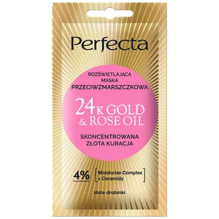 Perfecta 24K Gold & Rose Oil, rozświetlająca maska przeciwzmarszczkowa, 8 ml