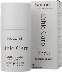 Nacomi Ethic Care Skin Reset Eye Cream Krem pod Oczy 15mlNacomi Ethic Care Skin Reset Eye Cream to krem pod oczy stworzony z myślą o delikatnej skórze wymagającej regeneracji i ukojenia. Formuła oparta na 100% składników pochodzenia naturalnego przywraca komfort, świeżość i zdrowy wygląd okolicy oczu. Regularne stosowanie kremu pomaga poprawić kondycję skóry wokół oczu - zwiększa jej blask o 22% oraz zmniejsza widoczność zmarszczek o 7,3%. Skóra wygląda na bardziej wypoczętą, promienną i wygładzoną, co sprawia, że spojrzenie nabiera świeżości. Nacomi Ethic Care Skin Reset Eye Cream doskonale sprawdzi się w codziennej pielęgnacji, zarówno rano przed makijażem, jak i wieczorem po demakijażu, kiedy skóra potrzebuje regeneracji i wyciszenia po całym dniu.