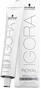 Schwarzkopf Igora Royal Silver White to farba stworzona specjalnie dla włosów dojrzałych, srebrnych i białych, które potrzebują podkreślenia i neutralizacji niechcianych odcieni. Dzięki technologii demipermanentnej i kompleksowi Pro-Age, zawierającemu siliaminę, kolagen oraz niskie stężenie amoniaku, produkt zapewnia wyjątkowe efekty koloryzacji. Podkreśla naturalne piękno srebrnych i białych włosów, jednocześnie neutralizując matowe i żółte tony oraz tuszując odcień soli i pieprzu. Zalety produktu Neutralizacja matowych i żółtych tonów Zawiera kompleks Pro-Age Wzbogacony kolagenem i niskim stężeniem amoniakuSposób użyciaMieszaj 60ml farby z 60ml developera Igora Royal. Czas trzymania z oksydantem zależny jest od stężenia: