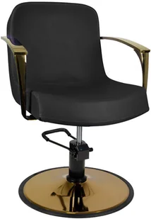 Nowoczesny fotel fryzjerski o wyjątkowym designie i niezwykłej jakośći. Metalowe elementy błyszczą kolorem złota wzmagając poczucie luksusu. Bardzo wygodny, idealnie pasujący do nowoczesnych salonów. Specjalnie wyprofilowany, by zapewnic klientowi wygodną pozycję podczas zabiegu. Regulowany w płaszczyźnie pionowej. Bardzo stabilny i solidny. Obicie z wysokiej jakości ekoskóry. Kolor czarny.