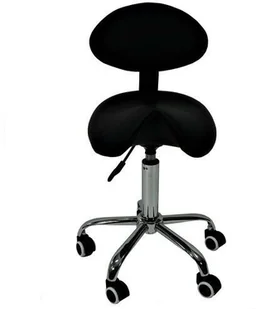 Wygodny i elegancki, dobrze wyprofilowany taboret z oparciem oraz hydrauliczną regulacją wysokości. Dostępny w czarnym kolorze, wykonany z ekologicznej skóry, łatwo zmywalny. Usytuowany na metalowej pięcioramiennej podstawie na kółkach. Stabilny, masywny z dużym siodłem i szerokim oparciem. Zastosowanie: