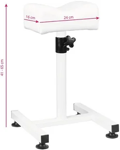 Podnóżek ma regulowaną wysokość, dzięki czemu może być pomocny podczas wykonywania wszelakich zabiegów, a w szczególności podczas przeprowadzania zabiegu pedicure.