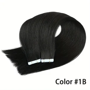 TEMU 20 sztuk/1 paczka Prosta taśma z ludzkich włosów w rozszerzeniach Proste doczepiane włosy 16 "-26" # 1B Czarny ludzki włos Extneisons dla kobiet