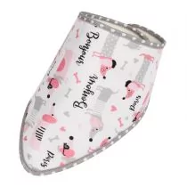 Spodnia warstwa to bawena frotte, ktra doskonale sprawdza si jako liniaczek. Wierzchnia warstwa natomiast to bawena zdobiona kolorowymi dziecicymi nadrukami - tutaj: jamniki, ktra idealnie nadaje si do stosowania jako apaszka. liniak zapinany jest na rzep, dziki czemu z atwoci mona regulowa jego wysoko. Wymiary apaszki to 40x20 cm.