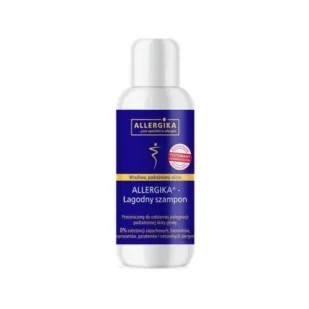 Allergika Łagodny szampon do włosów 200 mlAllergika Łagodny szampon zawiera wyselekcjonowane substancje myjące, które nie podrażnią wrażliwej skóry głowy i nie powodują łzawienia oczu. Produkt łatwo się spłukuje i może byś stosowany codziennie. Szampon nie zawiera SLS, silikonów i substancji alergizujących, takich jak kokamidopropylobetaina i białka hydrolizowane, które występują w zwykłych szamponach do włosów. Jego minimalistyczna receptura zmniejsza ryzyko wystąpienia alergii wtórnej. Może by