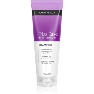 John Frieda Frizz Ease Infitine Smooth Shampoo, 250 ml, Szampony dla kobiet, Żeby włosy były zdrowe, lśniące i pełne witalności, należy zapewnić im odpowiednią pielęgnację. Zaczyna się ona regularnym myciem włosów. Szampon John Frieda Frizz Ease Infitine Smooth Shampoo pomoże skutecznie usunąć z włosów i skóry głowy wszelkie zabrudzenia, tłuszcz oraz pozostałości produktów do stylizacji i innych kosmetyków. Zapewni Ci uczucie świeżości i czystości, a także idealnie przygotuje Twoje włosy i skórę głowy do dalszej pielęgnacji i wspomoże działanie zawartych substancji czynnych. Właściwości:
