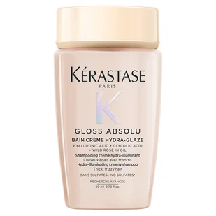 Wzbogacony szampon nawilżająco-nabłyszczający Gloss Absolu Créme Hydra-Glaze od Kérastase jest przeznaczony do pielęgnacji włosów grubych i puszących się. Jego zaawansowana formuła wzbogacona kwasem hialuronowym, kwasem glikolowym i olejkiem z dzikiej róży pomaga chronić włosy przed puszeniem, zapewniając im wymarzoną sprężystość i połysk. Kerastase Gloss Absolu, wzbogacona kąpiel, szampon do włosów: 75% natychmiastowego połysku* 4-dniowa ochrona przed puszeniem* 4 dni połysku* 100 godzin wygładzenia* Kwas hialuronowy Kwas hialuronowy to naturalna substancja występująca w organizmie. Jego cząsteczki zatrzymują wilgoć i wiążą około tysiąc razy więcej wody niż same ważą, dzięki czemu ma on właściwości intensywnie nawilżające Kwas glikolowy Naturalny kwas owocowy o właściwościach złuszczających, wnika w głąb łusek włosów, silnie je oczyszczając.
