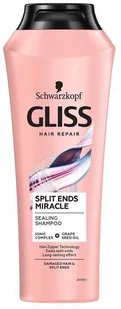 Szampon Gliss Split Ends Miracle z kompleksem jonowym i olejem z pestek winogron do zniszczonych włosów i rozdwojonych końcówek. Odbudowuje uszkodzone włókna włosów i spaja zniszczone końce. Wzmacnia i oczyszcza włosy.
