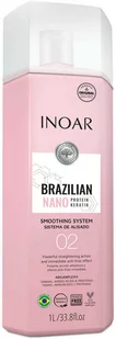 Twoje włosy są wyjątkowo niesforne? Marzysz o tym, by wyprostować i wygładzić swoje puszące się włosy? Szukasz profesjonalnych kosmetyków bez formaldehydu? Zdecyduj się zatem na kurację do trwałego prostowania włosów nanoplastię Inoar Professional Brazilian Nano Protein Keratin Smoothing System 1000 ml. Kuracja prostująca włosy Inoar Brazilian Nano Protein Keratin: silne działanie prostujące redukuje puszenie nadaje połysk wyrównuje strukturę włosów ułatwia rozczesywanie wygładza zawiera arganplex cząsteczka taniny aminokwasy proteiny nie zawiera formaldehydu efekt utrzymuje się: do 3-4 miesięcy kosmetyk wegański nie zawiera parabenów polecana szczególnie do włosów niesfornych, puszących się Trwałe prostowanie puszących się włosów z nanoplastią Inoar Nano Protein Keratin to kuracja o silnym działaniu prostującym, który to efekt utrzymuje się na włosach nawet przez 3-4 miesiące. Dzięki nanoplastii Inoar możesz uzyskać natychmiastowy efekt zatrzymujący puszenie się włosów.