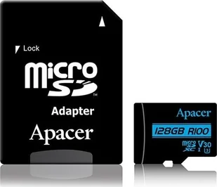 1x karta microSDXC 128GB, 1x adapter SD - prędkość odczytu: 100 MB/s - prędkość zapisu: 30 MB/s - dostępne pojemności: