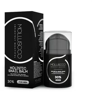 Balsam dla mężczyzn z 30% zawartością śluzu ślimaka HELIX ASPERSA od Molluscoo, 50 ml to odpowiedź na potrzeby wrażliwej, podrażnionej po goleniu lub skłonnej do wyprysków cery każdego mężyczny. Formuła kremo-żelu szybko się wchłania, nie pozostawia tłustego filmu na twarzy i co najważniejsze natychmiast koi podrażnioną skórę. Dodatkowo wzmacnia funkcję ochronną skóry. Bazą balsamu jest oczywiście śluz ślimaka, który zawiera w sobie naturalne składniki, takie jak: alantoina, która intensywnie nawilża i przyśpiesza regenerację, kwas glikolowy, spowalniający procesy starzenia, kolagen i elastyna, działające przeciwzmarszczkowo oraz witaminy A i E, które odżywiają i regenerują skórę.