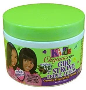 Africa's Best Kids Organics Gro Strong Triple Action Growth Stimulating Therapy jest wzbogacona o Nutrigro, ekskluzywny kompleks organiczny o potrójnym działaniu wzbogacony oliwą z oliwek z pierwszego tłoczenia. Niezależnie od tego, czy jest zrelaksowany, prasowany czy naturalny, Gro Strong pomaga nowemu wzrostowi stać się silniejszym, bardziej giętkim, bardziej miękkim, lepiej nawilżonym i odżywionym. Zioła i naturalne składniki roślinne Gro Strong wnikają głęboko w łodygę włosa, pobudzając wzrost bez uszkodzeń i pozostawiając włosy z pięknym połyskiem. Africa's Best Kids Organics Gro Strong Terapia stymulująca wzrost o potrójnym działaniu: Wzmocniona organicznym kompleksem wzrostu Nutrigro o potrójnym działaniu.