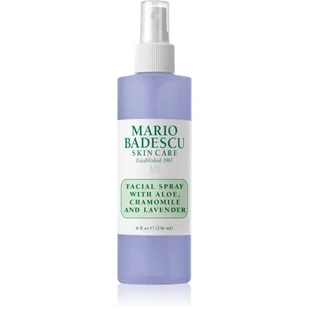 Mario Badescu Aloe, Camomile & Lavender - mgiełka do twarzyWielozadaniowa mgiełka zawierająca witaminę C z nawilżającym aloesem, kojącym rumiankiem i odprężającą lawendą. Może być stosowana na twarz, szyję lub włosy, zapewniając kojące działanie na skórę i zmysły. uspokajający olejek lawendowy i ekstrakt z rumiankułagodząca i nawilżająca woda eteryczna z lawendyprzeciwutleniająca Witamina C (kwas askorbinowy) o działaniu rozjaśniającymoczyszczający ekstrakt z tymiankubogaty w minerały, zmiękczają