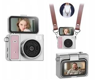 Aparat cyfrowy Xrec Mini Aparat Kamera Retro Video 2k Wisiorek Breloczek Obrotowy Ekran / Xrec X7 / Różowo - Szary