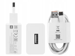 Oryginalna ładowarka sieciowa Xiaomi 22,5W z kablem Typu C Ładowarka obsługuje technologię szybkiego ładowania Quick Charge 3.0 przy napięciu wyjściowym 5V, ...