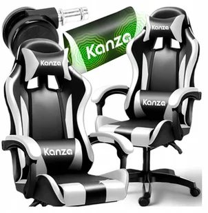 FOTEL GAMINGOWY Z MASAŻEM CZARNO-BIAŁY KANZA