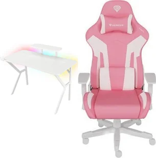 Biurko Genesis Holm 320 RGB Białe 120 cmx60 cm + Fotel Nitro 710 różowo-biały