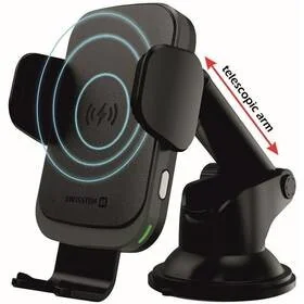 Uniwersalny uchwyt samochodowy SWISSTEN S-Grip W2HK3 z ładowaniem bezprzewodowym (indukcja) 15W. Uchwyt samochodowy można zamontować na desce rozdzielczej lub na przedniej szybie, aby mieć telefon na wysokości oczu. Czujnik uchwytu automatycznie chwyta telefon szczypcami. Ramię teleskopowe można obrócić do żądanej pozycji i odległości. Wysoka moc 15W pozwala szybko naładować wszystkie smartfony z ładowaniem bezprzewodowym podczas wykonywania połączenia i jednocześnie mieć uruchomioną nawigację.