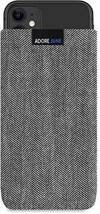 Adore June etui biznesowe kompatybilne z Apple iPhone 11 etui na telefon komórkowy z charakterystycznego materiału w jodełkę - szare/czarne, etui ochronne z efektem czyszczenia wyświetlacza AJ1769-AP