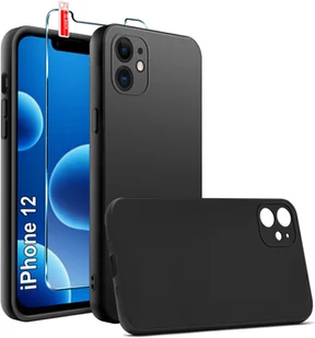 Etui Czarne Matowe Silikon Slim do iPhone 12 + SZKŁO 9H