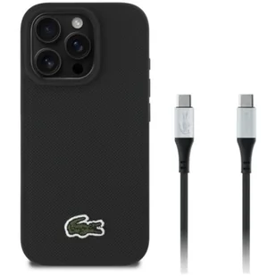 Etui LACOSTE Iconic Petite Pique Woven MagSafe do Apple 16 Pro Max + kabel USB-C - USB-C Czarny | Bezpłatny transport