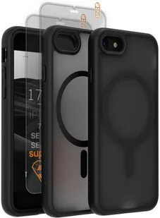 SUPERO Etui matowe Magmat MagSafe do iPhone SE 2022 / SE 2020 / 8 / 7, czarne + 2 szt. szkła