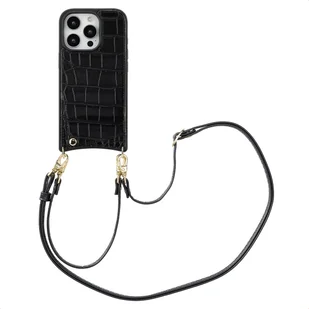 Etui na telefon Selencia Nova Croco ze sznurkiem i uchwytem na kartę do Apple iPhone 16 Pro - czarne