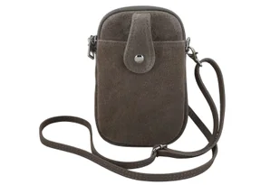 Wnętrze etui: główna kieszeń na telefon jest wykończona podszewką oraz zasuwana na zamek, co zapewnia bezpieczeństwo przechowywania. Z przodu znajduje się praktyczna kieszeń na zatrzask, idealna na kartę, klucze lub drobne akcesoria. Etui na telefon ze skóry zamszowej wyposażone jest w doczepiany, regulowany pasek (maksymalna dł. 133cm, maksymalna wys. 62cm, szerokość paska 1cm), dzięki czemu możesz nosić je na ramieniu lub crossbody, dopasowując długość do własnych potrzeb. Całość dopełniają srebrne okucia, które nadają etui nowoczesnego i eleganckiego charakteru. Etui na telefon ze skóry zamszowej dostępne jest w czterech klasycznych kolorach: brązowy, brązowy ciemny, beżowy ciemny oraz czarny.
