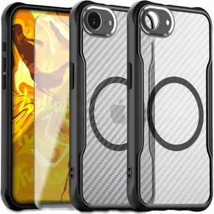 Etui Pancerne do Apple iPhone 16e Do Magsafe, Karbon, Czarne Szkło 9H