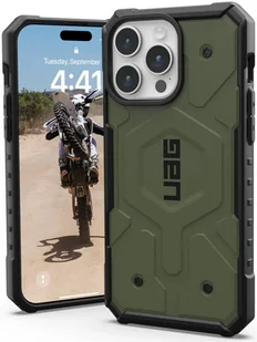 UAG Pathfinder Magsafe Case iPhone 15 Pro Max Olive Drab EtuiPathfinder Magsafe Case firmy UAG do iPhone'a 15 Pro Max posiada ultralekki pancerz, odporną na wstrząsy ramkę i sześciokątny rdzeń, który zapewnia zwiększoną ochronę przed upadkami i uderzeniami. Ulepszona, podniesiona ramka ekranu chroni wyświetlacz przed przypadkowymi upadkami i uderzeniami, a ochrona narożników jest zapewniona przez paski ochronne TPU. Zintegrowany moduł magnetyczny utrzymuje iPhone'a w miejscu, zapewniając nieprzerwane ładowanie MagSafe. Spełnia standardy ochrony 18 stóp. (5,4 metra) przed wstrząsami i kroplami wody.