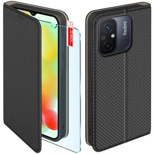 Etui z klapką do Xiaomi Redmi 10C 12C Zamykane Czarne Futerał Szkło 9H