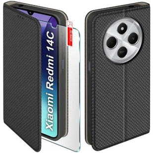 Etui z klapką do Xiaomi Redmi 14C Zamykane Czarne Futerał Szkło 9H
